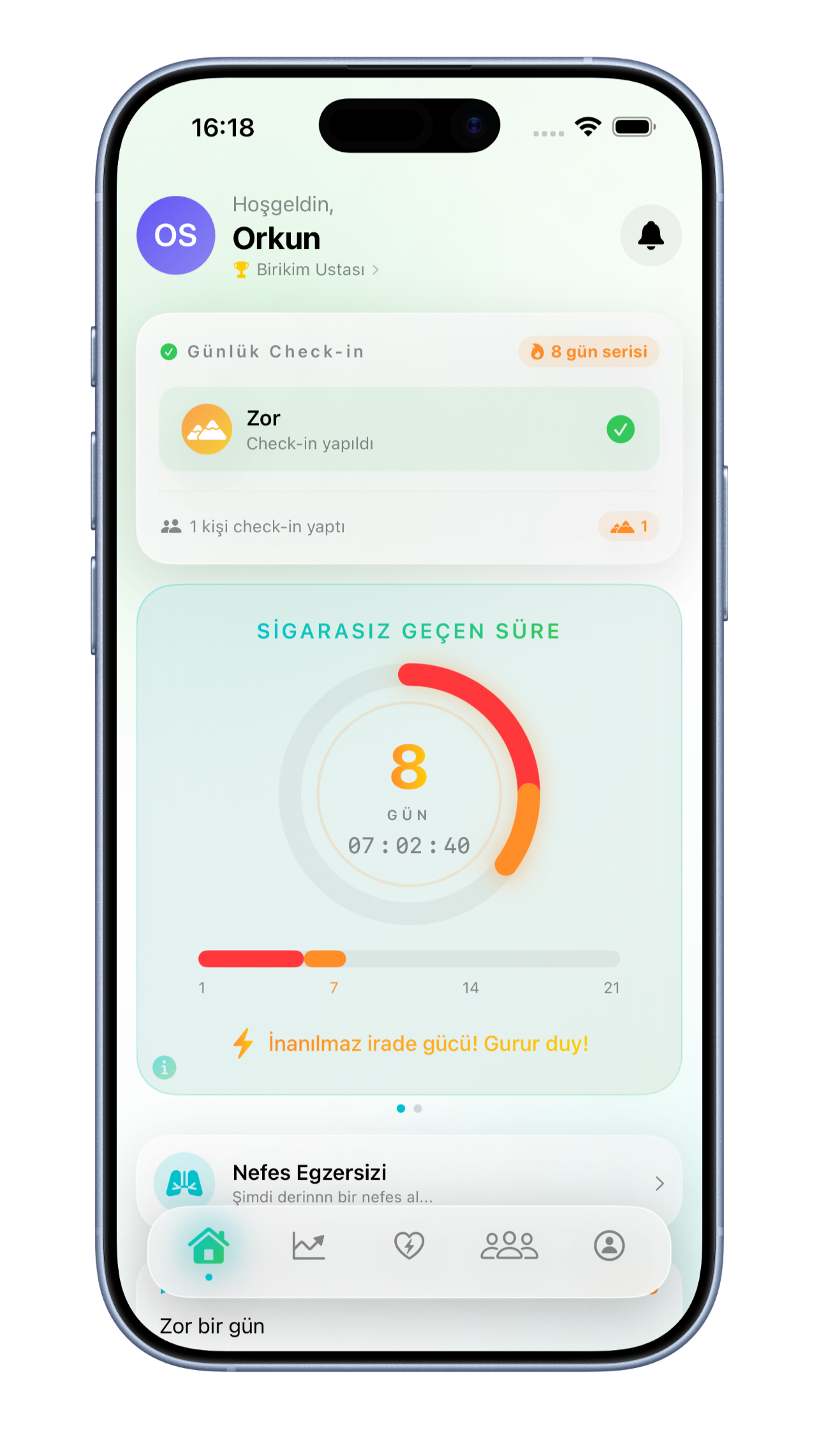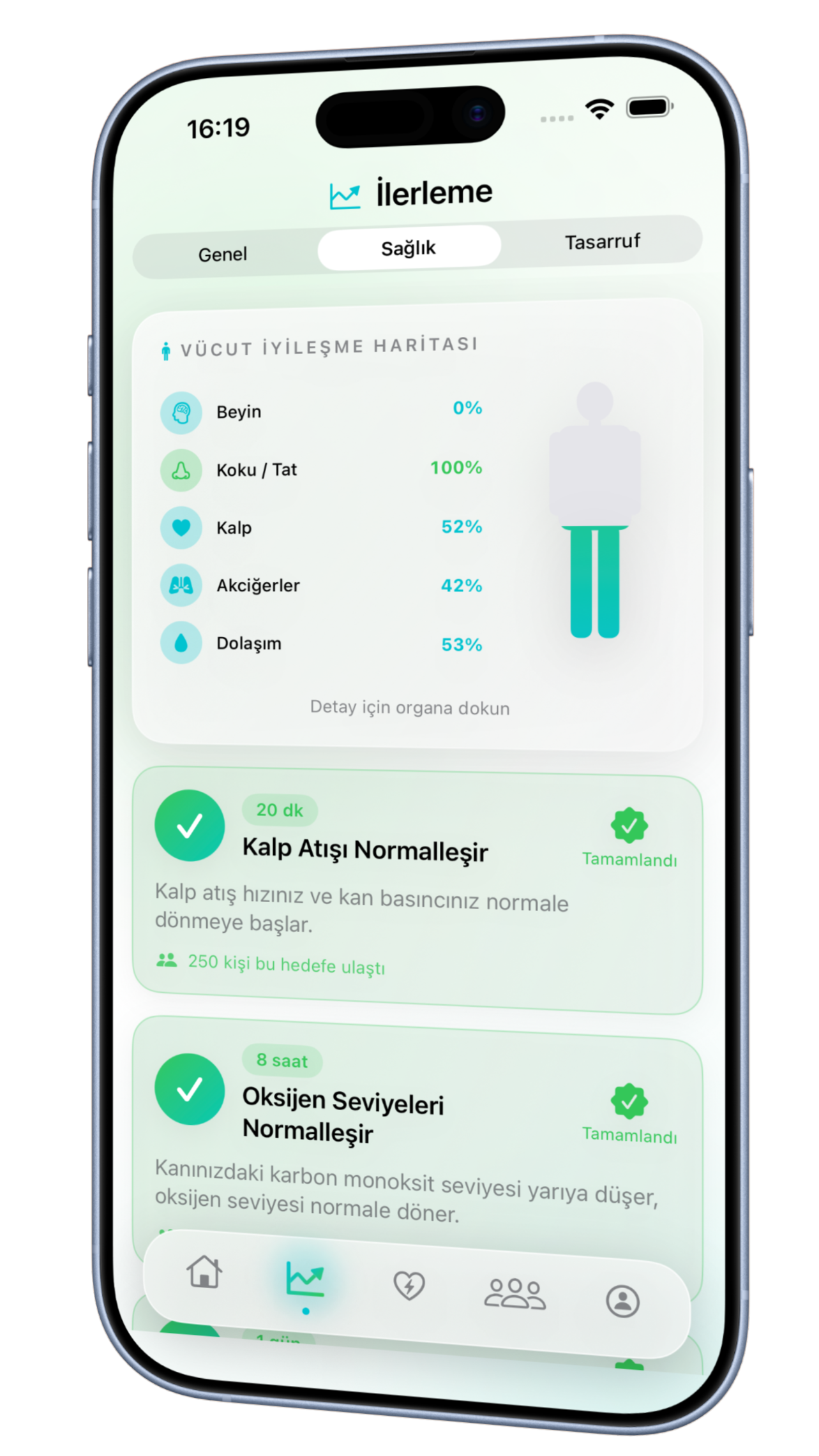 Sigarayı bırakma yolculuğunuzda yanınızda. İlerlemenizi takip edin, sağlık dönüm noktalarınızı kutlayın ve topluluk desteğiyle motive kalın.